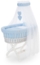 FabiMax Stubenwagen Weiß lackiert, 2 in 1 Musselin / Waffelpiqué Komplettset Blau mit Decke und Kissen Bild 1