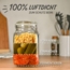 Praknu Vorratsglas Set mit 4 Einmachgläsern (1,5 l) aus Glas. Die luftdichten Deckel mit Edelstahl Bügelverschluss und zusätzlichen Silikondichtungen sorgen für eine optimale Aufbewahrung Ihrer Lebensmittel. Jedes Glas wird mit Etiketten und einem Markierstift geliefert, um den Inhalt und das Verfallsdatum zu kennzeichnen. Spülmaschinenfest und umweltfreundlich verpackt, sind diese Gläser ideal für das Einmachen, Einlegen und Fermentieren.
