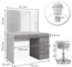 | Lieferumfang | 1x Schminktisch, 1x Spiegel, 1x Hocker, 1x LED-Lichterkette (ohne Dekoration) |