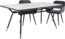 Rechteckiger Esstisch im eleganten Marmor-Look, ideal für 4-6 Personen. Die Tischplatte aus Sicherheitsglas ist unempfindlich gegen Flecken und wird von einem stabilen schwarzen Stahlgestell getragen. Mit messingfarbenen Fußmanschetten und gerundeten Ecken fügt sich der Tisch harmonisch in moderne Wohn- und Arbeitsräume ein. Perfekt für den gehobenen Industrial-Stil oder als stilvoller Küchentisch.