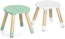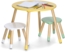 Die 3-tlg. Kinder-Sitzgarnitur aus Kiefer in Weiß, Türkis und Gelb ist ideal für Kinder von 1,5 bis 4 Jahren. Sie besteht aus einem Tisch und zwei Hockern, die aus robustem MDF und Kiefer gefertigt sind. Die Hocker haben einen Durchmesser von 28,5 cm und eine Höhe von 26,5 cm, während der Tisch einen Durchmesser von 60 cm und eine Höhe von 45 cm aufweist. Die Hocker sind bis zu 30 kg belastbar, der Tisch bis zu 20 kg.