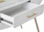Die Dmora Konsole Spirit ist ein eleganter und funktioneller Konsolentisch mit den Maßen 110 x 40 x 80 cm. Sie bietet eine Tragkraft von 20 kg und eignet sich ideal für verschiedene Räume wie Arbeitszimmer, Büros, Schlafzimmer oder Flure. Mit ihrem modernen Design und den goldenen Metallbeinen ist sie nicht nur praktisch, sondern auch ein stilvoller Blickfang. Die Konsole verfügt über drei Schubladen und ist aus robustem Eisen und MDF gefertigt.