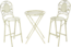 Klappbares Bistro-Set für 2 Personen im eleganten Retro-Stil. Das Gartenbar Set BIVIO aus pulverbeschichtetem Eisen in Hellgrün bringt provenzalischen Charme auf Ihren Balkon oder in Ihren Garten. Mit einem durchbrochenen Design und floralen Elementen ist es ideal für Frühstück oder Mittagessen im Freien. Die Stühle und der Tisch sind platzsparend klappbar und benötigen keine Montage.