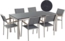 Essgruppe für 6 Personen GROSSETO in Stein Granit Optik mit den Maßen 180 x 90 x 76 cm in Grau. Dieses Gartentisch Set kombiniert elegantes Design mit hochwertigen Materialien. Der Tisch aus poliertem Granit und der stabile Rahmen aus gebürstetem Edelstahl bieten Robustheit und Witterungsbeständigkeit. Die sechs designer Stühle mit UV-beständiger Textilsitzfläche in Grau runden das Set ab. Ideal für Garten und Terrasse, überzeugt es durch Schmutz- und Feuchtigkeitsabweisung sowie einfache Montage.