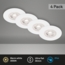 Briloner LED-Einbauleuchten Kulana 4er Set Mini 4,9 W, 480 lm in Weiß-Matt bieten eine moderne und ultraflache Lösung für Ihre Beleuchtung. Mit einer Höhe von nur 25 mm und einem Spritzwasserschutz (IP44) sind sie ideal für verschiedene Räume, einschließlich Badezimmer. Die Leuchten erzeugen warmweißes Licht mit 3.000 Kelvin und haben eine Lebensdauer von ca. 25.000 Stunden.