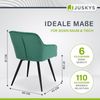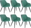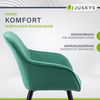 Das 6er Set Loungesessel Tarje mit edlem Samtbezug in grün ist ein echter Eyecatcher. Das moderne Design der 6 Polsterstühle wird Ihr Wohnzimmer im Sturm erobern. Die schwarzen, matten Metallbeine strahlen Robustheit und Eleganz aus. Lassen Sie sich von der großen komfortablen Sitzfläche zum Faulenzen einladen. So können Sie entspannt den Tag hinter sich lassen und sich in Ihren neuen lässigen Sesseln die verdiente Portion Erholung gönnen.