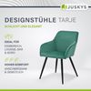 Produktmerkmale: - Edler Samtbezug - 4 kratzfeste Metallbeine - Pflegeleichter Bezug - Facettenreiche Nutzung - Gemütliche Passform - Angenehme Armlehnen - Moderne Konstruktion - Einfacher Zusammenbau Wahre Allroundtalente Unsere Loungesessel Tarje sind echte Allroundtalente. Die modernen Sessel mit bequemer Passform und Armlehnen machen sich besonders gut als Cocktailsessel zum entspannten relaxen im Wohnzimmer. Die praktische Größe und pflegeleichte Materialauswahl machen sie zudem zu schicken Küchenstühlen. Auch Büro oder Arbeitszimmer werden durch unsere eleganten Polsterstühle zum Strahlen gebracht. Hochwertige Materialauswahl Die schicken Polsterstühle glänzen nicht nur durch ihre Optik, sondern auch durch ihre hochwertigen und sorgfältig ausgewählten Materialien. Die robusten Beine aus pulverbeschichtetem Metall sind besonders kratzfest und geben unseren Sesseln den sicheren Stand. Aber erst die Kombination mit dem elegantem und leicht glänzenden Samtbezug machen aus unseren Stühlen ein echtes Highlight. Wenn Design und Komfort aufeinander treffen Mit unseren Loungesesseln Tarje haben wir das Zusammenspiel von Design und Komfort wohl perfektioniert. Lassen Sie sich in die dick gepolsterten Sitzflächen fallen und den Abend gemütlich ausklingen. Nicht zuletzt sind die trendigen Loungestühle aber auch einfach ein absoluter Eyecatcher. Bringen Sie auch Ihr Zuhause zum Strahlen und schaffen sich einen Ort zum Entspannen. Unkomplizierter Zusammenbau Mit nur acht Schrauben lassen sich Beine und Sitz unkompliziert zusammenbauen. So sind unsere 6 Esszimmerstühle im Nu aufgebaut und Sie können sich an Ihrer neuen Anschaffung erfreuen, mit einem Buch entspannen oder Familie und Freunde zum gemeinsamen Bestaunen Ihrer trendigen Esszimmerstühle einladen.