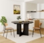 FUFU&GAGA Küchentisch ist ein runder Esstisch mit klappbaren Platten in elegantem Schwarz. Mit einem Durchmesser von 120 cm und einer Höhe von 75 cm bietet er eine stilvolle Lösung für verschiedene Wohnsituationen. Die Tischplatte aus robustem MDF lässt sich durch vier gebogene Außenplatten im Handumdrehen von rund auf quadratisch (85x85 cm) verwandeln, ideal für kleine Räume oder besondere Anlässe.