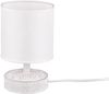 Moderne Keramik Tischleuchte MARIE mit Stofflampenschirm in Weiß, Ø13cm, Höhe 20cm. Diese Tischleuchte von Reality Leuchten besticht durch ein zeitloses Design mit einem Mix aus modernen und klassischen Elementen. Der Keramiksockel mit orientalischen Ornamenten und der runde Stoffschirm in Weiß verleihen ihr eine besondere Eleganz. Mit einem Schnurschalter für bequeme Bedienung. Ideal als Wohnzimmerlampe, Nachttischlampe oder dekorative Wohnraumleuchte.