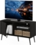 Furinno Claude TV-Ständer im Mid-Century-Stil mit Holzbeinen, einem Schrank und Zwei Regalen, Espresso