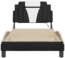Das Bettgestell "Viana" mit LED-Leuchten in Schwarz und Weiß (80 x 200 cm) ist eine stilvolle Ergänzung für Ihr Schlafzimmer. Hergestellt aus langlebigem Kunstleder, bietet es eine hervorragende Rückenunterstützung durch das mit Schaumstoff gefüllte Kopfteil-Kissen. Die Sperrholzlatten gewährleisten eine optimale Gewichtsverteilung, während die farbenfrohen LED-Leuchten und das wellenförmige Design dem Bettgestell eine moderne Note verleihen.
