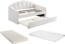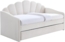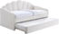 Das Ausziehbett ELUSIA in Muschelform bietet eine praktische Lösung für Übernachtungsbesuche. Mit einer Liegefläche von 90x190 cm und einem zweiten ausziehbaren Schlafplatz ist es ideal für Kinder. Der Bezug aus 100 % Polyester in Beige und die stabile Holzspanstruktur sorgen für Komfort und Langlebigkeit. Das Bett ist mit einem Lattenrost ausgestattet und hat eine maximale Traglast von 230 kg.