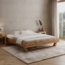 Durch seine klare Formgebung fügt sich das Bett mühelos in verschiedenste Raumkonzepte ein – vom klassischen Schlafzimmer bis hin zum modernen Loft. Die natürliche Maserung des Eichenholzes schafft eine angenehme Wohnatmosphäre und unterstreicht den nordischen Charakter des Designs.