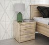 Der elegante Nachttisch in Bianco-Eiche neben dem Bett ist ein großartiger Ort als Ablage für ein Telefon, ein Buch oder einen Wecker. Sein universelles Design und der klassische Stil ermöglichen es Ihnen, den Schrank auch für den Flur und das Wohnzimmer auszuwählen, wo er sich als kleines und funktionales Accessoire bestens bewähren wird. Das dem Naturholz nachempfundene Dekor bringt gemütliche Familienatmosphäre in den Raum, Drei geräumige Schubladen, damit Sie Ihre Kleinigkeiten schnell zur Hand haben, Die Rückseite schützt die Wand vor Beschmutzung