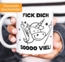 Hochwertige Keramik-Tasse mit dem witzigen Spruch "Fick dich so viel - Einhorn". Diese komfortable Tasse hat ein Fassungsvermögen von ca. 325 ml und einen großen Henkel für optimalen Griff. Sie ist spülmaschinengeeignet, was eine einfache Reinigung ermöglicht. Die Tasse überzeugt durch ihre hohe Langlebigkeit und Farbbrillanz, die in Deutschland mit Liebe zum Detail designed und in Handarbeit bedruckt wurde.