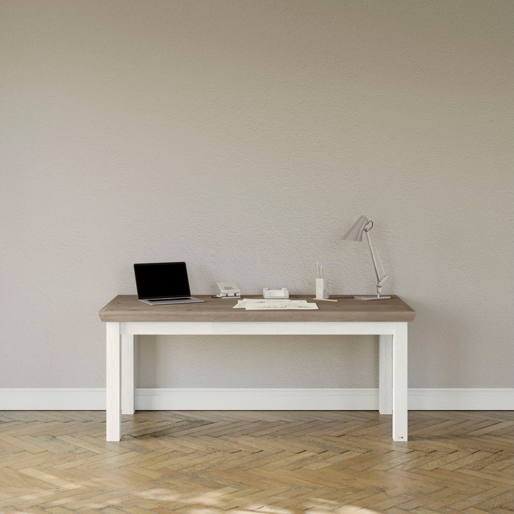 Dieser Schreibtisch «York» von set one by Musterring vereint Funktionalität und Stil im Landhaus-Design. Mit einer Breite von 180 cm bietet er ausreichend Platz für Ihre Arbeitsutensilien. Die langlebige und verzugfreie Spanplatte sorgt für eine hohe Qualität und Stabilität. Hergestellt in Europa, ist dieser Tisch die ideale Wahl für Ihr Homeoffice.