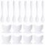 Praktisches 16-teiliges Set bestehend aus 8 Eierbechern und 8 Löffeln. Die Eierbecher haben einen Durchmesser von 5 cm und eine Höhe von 4 cm, während die Löffel eine Länge von 14 cm und eine Breite von 2,5 cm aufweisen. Die Eierbecher sind in mattem Weiß gehalten, die Löffel glänzen. Hergestellt aus leichtem Kunststoff, wiegt das gesamte Set nur 82 g.