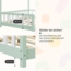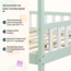 Das Hausbett Hesel mit Rausfallschutz in Mintgrün verwandelt jedes Kinderzimmer in ein zauberhaftes Schlummerparadies. Das aus Kiefernholz gefertigte Bett bietet nicht nur einen sicheren Schlafplatz für Mädchen und Jungen, sondern überzeugt auch durch seine charmante Hausoptik. Die Zaunumrandung sorgt für zusätzlichen Rausfallschutz, während die pflegeleichte Oberfläche die Reinigung erleichtert. Mit einem Gesamtmaß von 205 x 126 x 140 cm und einer Belastbarkeit von bis zu 120 kg ist es ideal für kleine Abenteurer.