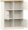 Das Bücherregal VIGO in Weiß aus massivem Kiefernholz bietet mit seinen 6 Fächern ausreichend Stauraum für Bücher, Zeitschriften und Dokumente. Das robuste Material verleiht dem Regal einen rustikalen Charme und sorgt für eine ansprechende Optik. Die Metallknöpfe ermöglichen ein einfaches Öffnen und Schließen der Türen. Zudem ist das Regal pflegeleicht und lässt sich leicht reinigen. Zur Sicherheit sollte das Regal mit der mitgelieferten Wandhalterung gesichert werden.