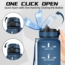 Die 1 l Trinkflasche ist ideal für Sport und Freizeit. Mit ihrem One-Touch-Öffnungsdesign können Sie bequem trinken, ohne den Verschluss abzuschrauben. Die Flasche ist aus lebensmittelechtem Kunststoff gefertigt, temperaturbeständig von -10 °C bis +80 °C und 100 % auslaufsicher. Die integrierte Zeitmarkierung und motivierende Slogans helfen Ihnen, Ihre Trinkziele zu erreichen. Dank der rutschfesten Handschlaufe ist sie einfach zu tragen und zu befestigen.