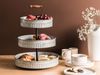 3-stöckiger Tortenständer KOUIGN in Silber – eine stilvolle Ergänzung für Ihre Küche oder besondere Anlässe. Dieser elegante Dessertständer aus robuster Eisenkonstruktion bietet Platz für Kuchen, Torten und Cupcakes. Der natürliche Holzgriff verleiht ihm einen rustikalen Charme. Mit einer Höhe von 54 cm und einer Breite sowie Tiefe von jeweils 38 cm ist er sowohl dekorativ als auch funktional.