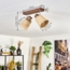 Moderne Deckenleuchte aus Holz und Metall in Dunkelbraun und Chromfarben. Diese 2-flammige Leuchte mit verstellbaren Strahlern bietet Platz für zwei E14 Leuchtmittel (nicht im Lieferumfang enthalten) und eignet sich ideal für den Innenbereich, wie Esszimmer, Flur, Schlafzimmer oder Wohnzimmer. Mit einer Höhe von 20 cm, einer Breite von 6 cm und einer Länge von 25 cm fügt sie sich harmonisch in verschiedene Raumkonzepte ein.
