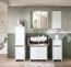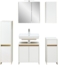 Pelipal 'Quickset 100' Badmöbel-Set vereint modernes Design mit funktionalem Stauraum. Das Set besteht aus einem Waschbeckenunterschrank mit Siphonausschnitt, einem Spiegelschrank mit Bügelleuchte, einem wandhängenden Hängeschrank, einem Unterschrank mit Schubkasten und einem Midischrank mit zwei Drehtüren und zwei Einlegeböden. Die Kombination aus Weiß Miniperl und Riviera Eiche NB sorgt für eine wohnliche Atmosphäre. Robustes MDF-Material und Kippsicherungen garantieren Stabilität und Langlebigkeit.
