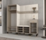 Die ABIKS MÖBEL Kompaktgarderobe PALERMO Set 1 vereint modernes Design mit hoher Funktionalität. Mit gepolsterten Paneelen, zahlreichen Regalen und Kleiderbügeln bietet sie viel Platz für Ihre Garderobe. Die eleganten Holzbeine mit goldenen Kanten runden das stilvolle Erscheinungsbild ab.