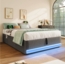 Prägnantes Polsterbett für Jugendliche mit den Maßen 90x200 cm, ausgestattet mit einer hochwertigen Matratze und einem hydraulischen Stauraumsystem. Das stilvolle Design aus Leinen und MDF sorgt für eine warme Atmosphäre. Integrierte USB- und Typ-C-Anschlüsse ermöglichen bequemes Laden von Geräten, während die LED-Beleuchtung mit Fernbedienung für stimmungsvolles Licht sorgt.