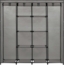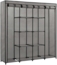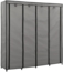 Dieser graue Kleiderschrank (175 x 45 x 170 cm) bietet eine praktische Aufbewahrungslösung für Kleidung und Schuhe. Der stabile Eisenrahmen sorgt für Langlebigkeit und ermöglicht eine einfache Handhabung. Mit vier Fächern können Sie Taschen und Schuhe ordentlich verstauen. Der schützende Stoffbezug hält Ihre Kleidung vor Staub geschützt. Bitte beachten Sie, dass eine Wandbefestigung erforderlich ist, um die Stabilität zu gewährleisten.