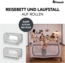 Ausgestattet mit praktischen Rollen könnt Ihr das Hauck Sleep N Play Go Plus mühelos von Raum zu Raum schieben. So könnt Ihr jederzeit dort sein, wo Ihr gebraucht werdet – sei es in der Küche, im Wohnzimmer oder auf der Terrasse. Und wenn Ihr mal niemanden zum Schieben habt, könnt Ihr das Bett ganz einfach zusammengeklappt hinter Euch herziehen.