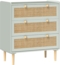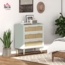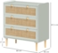 Die HOMCOM Kommode im Boho-Stil vereint elegantes Design mit praktischer Funktionalität. In einem ansprechenden hellblauen Farbton und mit Rattanoptik ausgestattet, bietet sie in ihren drei geräumigen Schubladen ausreichend Platz für 20 T-Shirts oder acht Jeans pro Schublade. Das kippsichere Design und die rutschfesten Fußpads sorgen für Stabilität und Sicherheit, während der hohe Bodenabstand die Reinigung erleichtert.