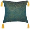 Dekokissen mit Quasten, 40x40 cm, grüne Farbe mit Golddruck. Dekorative Kissen sind ein Element der Innenausstattung, das in fast jedem Raum zu finden ist. Weiche Materialien verleihen dem Raum Gemütlichkeit, wodurch sich die meisten von uns besser fühlen, sich auf einem Sofa mit Kissen oder einem Stuhl mit einem weichen Sitz zu setzen. Darüber hinaus sind diese Arten von Textilien oft ein wichtiges Farbdetail, das dem Interieur einen einzigartigen Charakter verleiht.