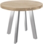 Edler Esstisch Sophia aus naturfarbenem Akazienholz mit einem silbernen 4-Fuß-Gestell. Die runde Tischplatte hat einen Durchmesser von 100 cm und eine Stärke von 50 mm, was sie zu einem robusten und einzigartigen Möbelstück macht. Die besondere Maserung des Holzes verleiht jedem Tisch einen individuellen Charakter. Ideal für rustikale, klassische oder Landhaus-Einrichtungen.