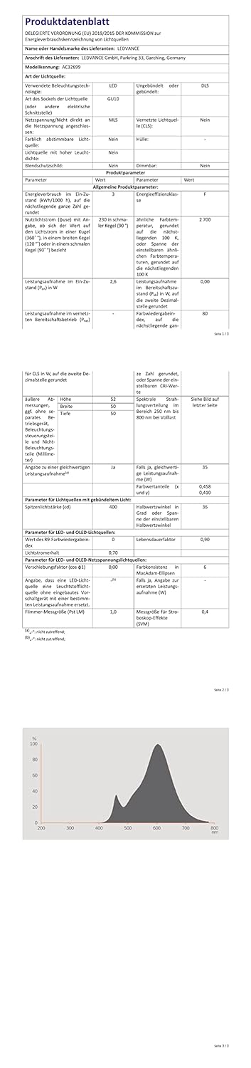 LED-Reflektorlampen PAR16 mit Retrofit-Stecksockel LED-Reflektorlampen PAR16 mit Retrofit-Stecksockel. Produkteigenschaften: LED-Lampen für Netzspannung. Nicht dimmbar. Sockel: GU10. Quecksilberfreie Lampen. Produktvorteile: Ideal für die wirtschaftliche Spotbeleuchtung. Alternative zu Hochvolt-Halogenlampen. Sehr geringer Energieverbrauch. Keine UV- und IR-nahen Anteile im Lichtstrahl. Stoß- und vibrationsfest dank LED-Technologie. Professionelles Thermomanagement. Anwendungsgebiete: Spotbeleuchtung für Lichtakzente. Anwendungen im Haushalt. Anstrahlen wärmeempfindlicher Objekte wie Lebensmittel, Pflanzen usw. Außenanwendungen nur in geeigneten Leuchten. Als Downlight zur Markierung von Gängen, Türen, Treppen, etc. Für stimmungsvolle Lichtakzente in Wohnräumen und Partykellern. Wohnräume, speziell wenn die Lampe sichtbar ist. Fassung GU10 Leistung2,6 Watt Spannung220 - 240 V Dimmbar Nein Gewichteter Energieverbrauch3. 00 k Wh/1000h Netzleistungsfaktor ?0,5 Lichttechnische Daten Entspricht herkömml. Lampe35 W Lichtstrom230 Lumen Lichtstärke600 cd Ausstrahlungswinkel36°Lichtfarbe Warmweiß / 2700 K Farbwiedergabeindex80 Ra Startzeit< 1 s Aufwärmzeit (60 %)< 0. 5 s Standardabweichung des Farbabgleichs<=6 sdcm Maße & Gewicht Abmessungen Ø 51 mm x 55 mm Gewicht-Lebensdauer Maximale Temperatur am Tc-Punkt70°C Anzahl der Schaltzyklen100. 000 Nennlebensdauer10. 000 Std Lichtstromerhalt nach Nennlebensdauer0,7 Materialien Quecksilberfrei Ja Fachgerecht zu entsorgen nach WEEE Ja Geeignet für Innenanwendungen.