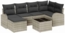 Dieses Garten-Sofa-Set von vidaXL vereint Stil und Funktionalität und bietet Platz für bis zu sechs Personen. Mit seiner hellgrauen Poly-Rattan-Konstruktion und wetterfesten Kissen ist es ideal für jeden Außenbereich. Die verstellbaren Füße sorgen für Stabilität auf unebenem Boden, während die elegante Rückenlehne für zusätzlichen Komfort sorgt.
