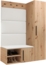 Garderoben-Set Mapreni II in Artisan Eiche bietet eine stilvolle und funktionale Lösung für Ihren Eingangsbereich. Das Set umfasst einen Drehtürenschrank, einen Schuhschrank, ein Kleiderhakenbrett und gepolsterte Wandpaneele. Alle Möbelstücke sind aus 16 mm dicker Spanplatte gefertigt und verfügen über praktische Details wie Antirutschfüße und eine Kleiderstange. Die Elemente können flexibel aufgestellt werden, um Ihren Raum optimal zu nutzen.