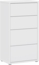 Moderne Kommode mit 4 Schubladen aus Holzwerkstoff in Weiß. Mit einer Breite von 54,5 cm, einer Höhe von 99,1 cm und einer Tiefe von 34,9 cm bietet sie ausreichend Stauraum für Kleidung, Textilien und Alltagsgegenstände. Die glänzende Oberfläche sorgt für eine elegante, lichtreflektierende Wirkung und fügt sich harmonisch in verschiedene Wohnstile ein.
