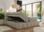 Das Boxspringbett NIRA KING bietet Ihnen eine komfortable Liegefläche von 180x200 cm und überzeugt durch sein modernes Design in dunkelbeige Struktur. Mit einer Kopfteilhöhe von 113 cm und der Matratzenhärte H4 sorgt es für optimalen Schlafkomfort. Die 7-Zonen Multipocket-Matratzen und der ca. 5 cm hohe Topper aus T25-Schaum garantieren eine angenehme Liegefläche. Praktische Bettkästen mit Hebemechanik bieten zusätzlichen Stauraum für Ihre Bettwäsche.