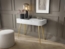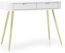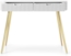 Der Selsey 'Zova' Schminktisch vereint modernes Design mit Funktionalität. Mit seinen eleganten, abgerundeten Kanten und dem raffinierten Rillenmuster auf den Fronten bringt er stilvollen Charme in Ihr Zuhause. Die zwei praktischen Schubladen bieten ausreichend Stauraum für Kosmetika und Accessoires. Hergestellt aus strapazierfähigen Materialien und ausgestattet mit goldfarbenen Metallfüßen, ist dieser Tisch sowohl ästhetisch ansprechend als auch langlebig.