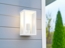 Moderne LED Außenwandleuchte in Weiß mit Glas, Höhe 26 cm. Diese stilvolle Außenleuchte aus weißem Druckguss Aluminium und transparentem Echtglas sorgt für eine gleichmäßige Lichtverteilung und angenehme Beleuchtung im Außenbereich. Mit der Schutzklasse IP44 ist sie ideal für die Fassadenbeleuchtung, z. B. im Eingangsbereich oder auf der Terrasse. Die Leuchte ist mit einer E27 Fassung für Leuchtmittel bis max. 60 Watt ausgestattet und wird mit einem 4 Watt E27 LED Leuchtmittel (470 Lumen, warmweiß, 2.700 Kelvin) geliefert.