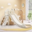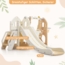 Das OKWISH 5-in-1 Kinderrutschen-Set vereint Rutsche, Schaukel, Treppe, Basketballkorb und Aufbewahrungsschrank in einem kompakten Spielgerät. Mit einer Größe von 184 x 179 x 103 cm und einem Nettogewicht von 16 kg bietet es vielseitige Unterhaltung für Kinder im Vorschul- und Grundschulalter. Die gepolsterten Rutschflächen und stabilen Treppen gewährleisten Sicherheit, während die Verwendung von ungiftigen Materialien für Langlebigkeit sorgt.