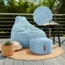Der Green Bean® Sitzsack mit Hocker aus Cord in Hellblau vereint Komfort und Stil. Mit einer großzügigen Rückenlehne und einem Sitzbereich von 80 x 80 x 90 cm bietet er ergonomisches Sitzen für Gaming, Lesen oder Entspannen. Die 230 Liter EPS-Perlenfüllung sorgt für optimale Unterstützung und angenehmes Nachgeben. Der leichte Sitzsack ist einfach zu transportieren und verleiht jedem Raum eine gemütliche Atmosphäre.