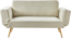 Schlafsofa SAARELA in Cremeweiß kombiniert modernes Design mit glamourösen Details. Die verstellbaren Armlehnen und robusten, goldenen Beine bieten sowohl Stil als auch Funktionalität. Das weiche Bouclé-Material sorgt für hohen Komfort, während die Schlaffunktion das Sofa in ein bequemes Einzelbett verwandelt. Ideal für Wohnzimmer oder Gästezimmer.