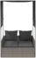 Entspannen Sie sich und genießen Sie Ihren Außenbereich mit der Doppel-Sonnenliege mit Dach und Vorhängen in Grau. Diese Liege bietet höchsten Komfort dank dick gepolsterter Kissen und einem praktischen Dach, das für Schatten sorgt. Hergestellt aus langlebigem Poly-Rattan, ist sie pflegeleicht und witterungsbeständig. Die Liegefläche misst 110 x 107 cm und die maximale Tragfähigkeit beträgt 110 kg.