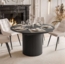 Der Esstisch ELODIE vereint elegantes Design mit praktischer Alltagstauglichkeit. Mit einer Breite von 120 cm und einer Höhe von 75 cm bietet er eine großzügige Fläche, die sich durch die Ausziehfunktion auf 160 cm erweitern lässt. Die matte Tischplatte ist kratzfest und leicht zu reinigen, während der runde, gefräste Sockel dem Tisch einen modernen Charakter verleiht. Erhältlich in den zeitlosen Farben Schwarz und Kaschmir, passt er perfekt in jedes Interieur.