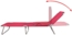 Die klappbare Sonnenliege mit verstellbarer Rückenlehne in Rot ist der ideale Begleiter für Ihre Freizeitaktivitäten oder den Urlaub. Der pulverbeschichtete Stahlrohrrahmen sorgt für Stabilität und Langlebigkeit. Die Liege lässt sich nach dem Gebrauch leicht zusammenklappen und nimmt somit wenig Platz ein. Dank hochwertiger Materialien ist sie besonders komfortabel.