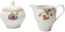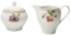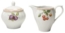 CreaTable 17035 Milch-Zucker-Set Flora Orchard für 1 Person, bestehend aus hochwertigem Porzellan in Weiß/Rot. Dieses 2-teilige Set, bestehend aus einem Milchgießer und einer Zuckerdose, ist die ideale Ergänzung zu Ihrem Kaffeeservice. Das nostalgische Design mit einem wunderschönen Obstdekor und einer dezenten Karogitterkante verleiht jeder Tafel einen eleganten Akzent. Das Set ist spülmaschinen- und mikrowellengeeignet und bietet Ihnen langanhaltende Freude.