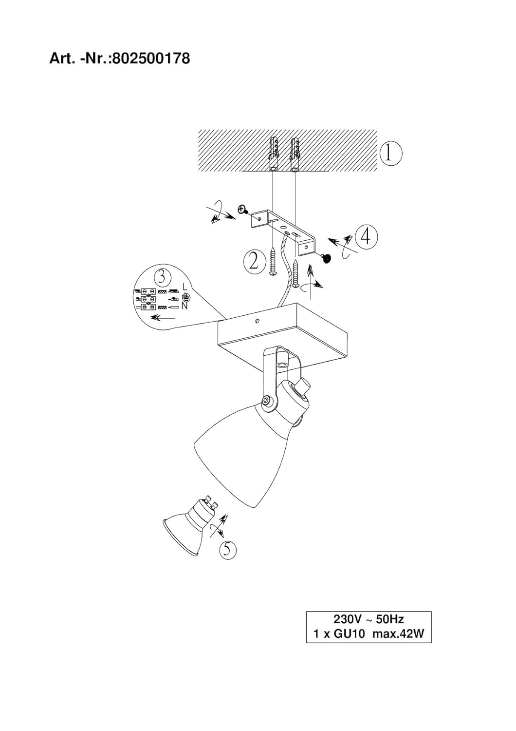- Geeignet für GU10 Leuchtmittel bis max. 42 Watt