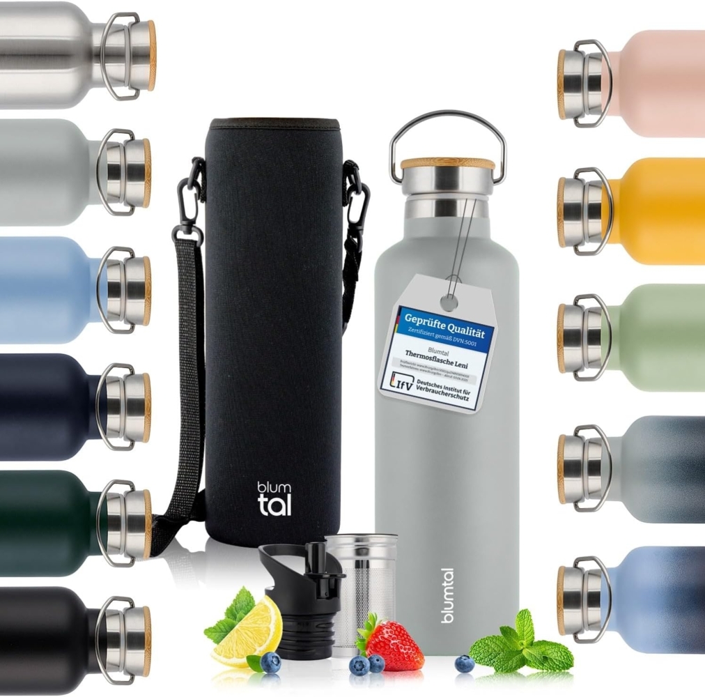 Blumtal Thermoflasche Thermosflasche 1L - doppelwandige Flasche Edelstahl 1L - BPA frei